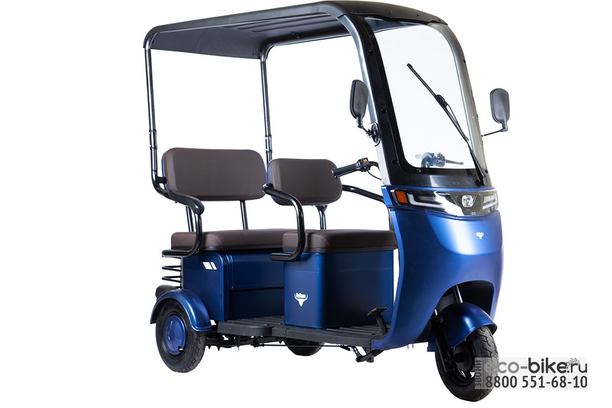 Этот современный компактный и юркий трёхколёсный электроскутер прекрасно подойдёт как для частного, так и для коммерческого использования. Наличие крыши с большим обзорным лобовым стеклом и стеклоочиститель расширяют сферу применения новинки.