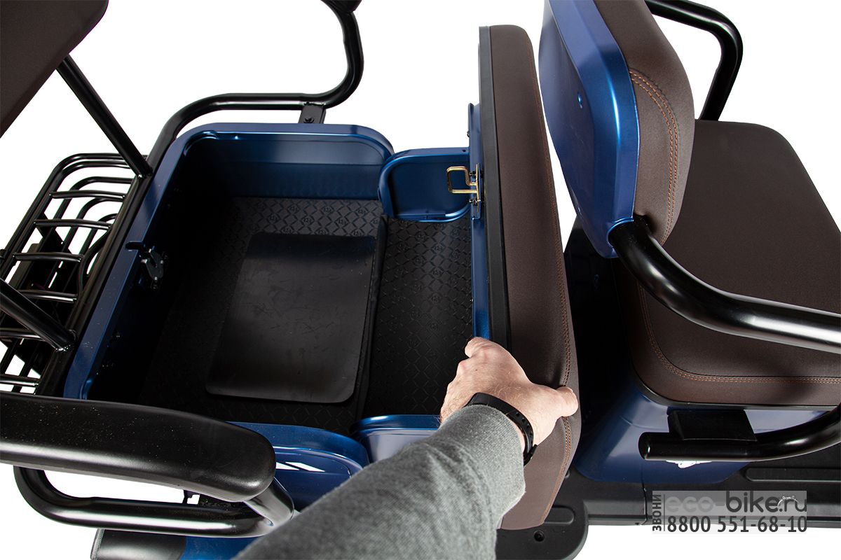 Под задним откидным сиденьем расположен вместительный грузовой отсек, в задней части — металлическая корзина с замком.